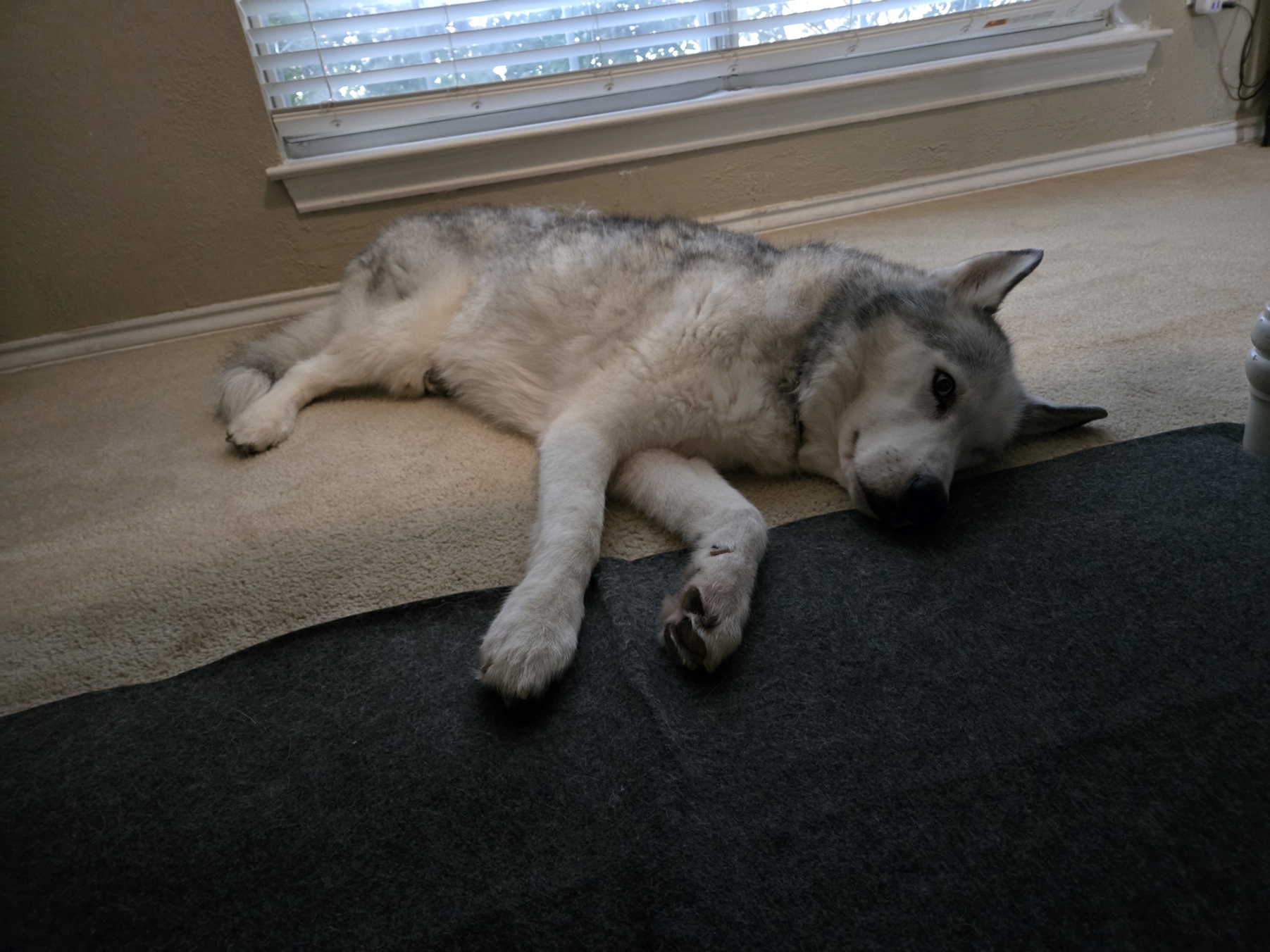 Poor Sassy has a "Mega-esophagus" and our vet has not seen one has bad/big as hers. "It should not be visible on an x-ray". Her's and Akula's food and water bowls are now up on 5 gallon paint buckets and the condition has greatly improved BUT...